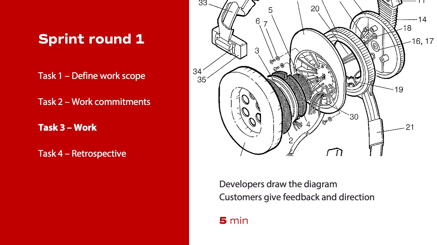 The 90 minute workshop consisted of 2 sprints, and the Developers needed to design a set of headphones for the deaf with direction from the Customers.